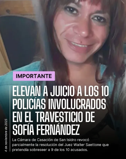 La Sala I de la Cámara de Apelación y Garantías de San Isidro rechazó el sobreseimiento que había otorgado el juez Walter Saettone (Juzgado 7 de San Isidro) a 9 de los 10 policías acusados por el travesticidio de Sofía Fernández, y su encubrimiento. La mujer trans de 36 años fue asesinada el 8 de abril de 2023 en la comisaria 5 de Pilar.