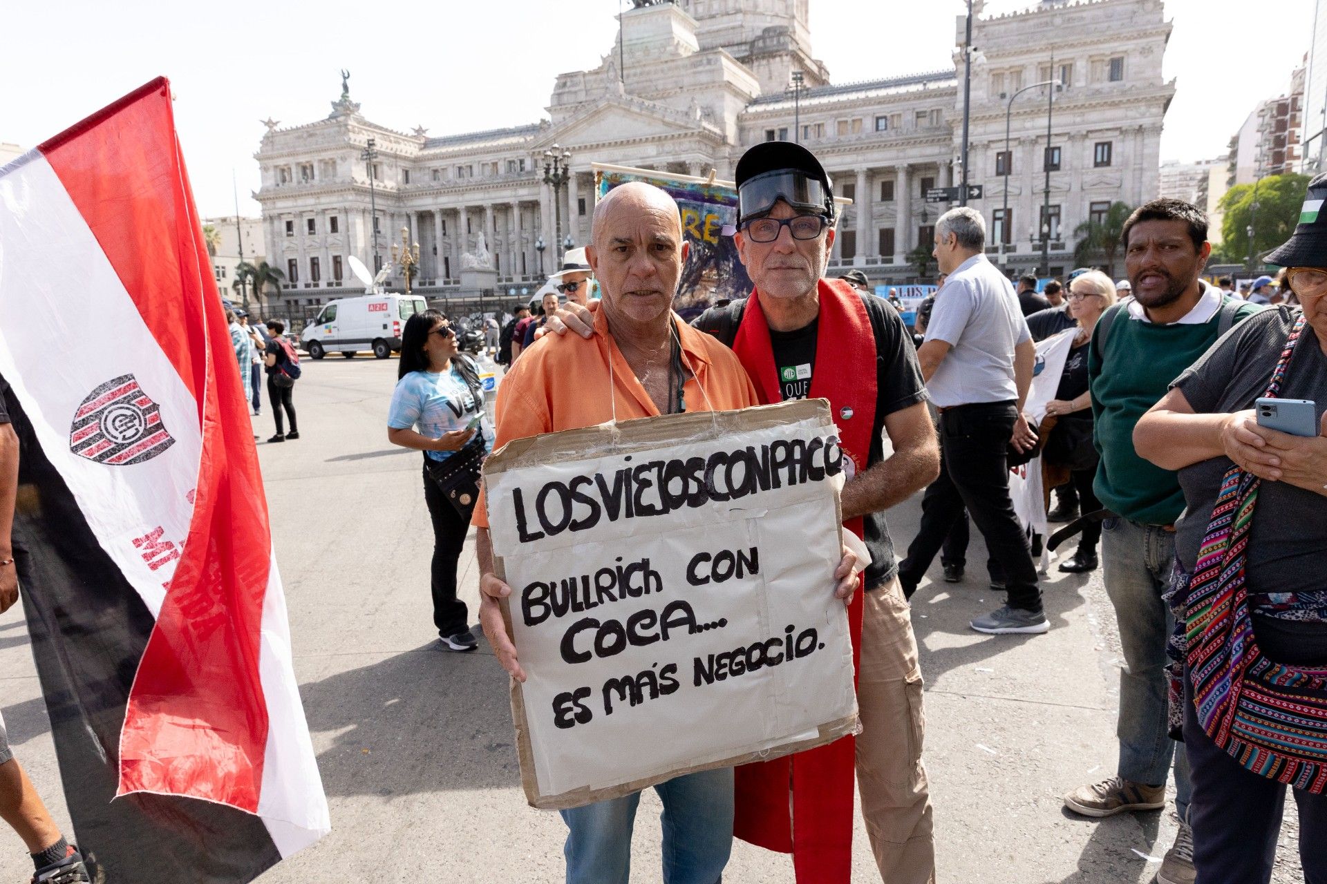 Luis empezó a ir a las marchas de los miércoles apenas asumió Milei. Un día vio a un grupo de jubilados en un noticiero y a la marcha siguiente se sumó: “Al principio no conocía a nadie. Bajé del 37 y me quedé mirando. Después fui con un cartel y ahí me hice algunos amigos”.