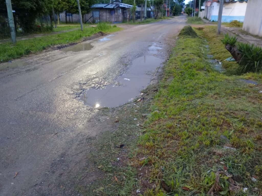 Estas situaciones se repiten —según su relato— en distintas zonas de San Rudecindo, donde las calles de tierra o con restos de viejo asfalto se convierten en trampas de barro durante los temporales.